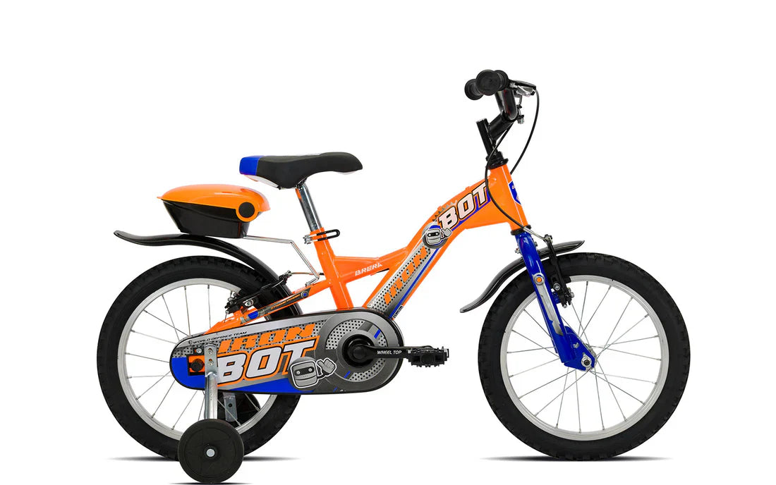 La IRON BOT è la prima bici della vita. Nata per rendere felici soprattutto i bambini più piccoli appassionati di robot. Scegli la versione 12” per i bimbi dai 2 ai 4 anni, altrimenti opta per la versione 16” per i 4-5 anni.