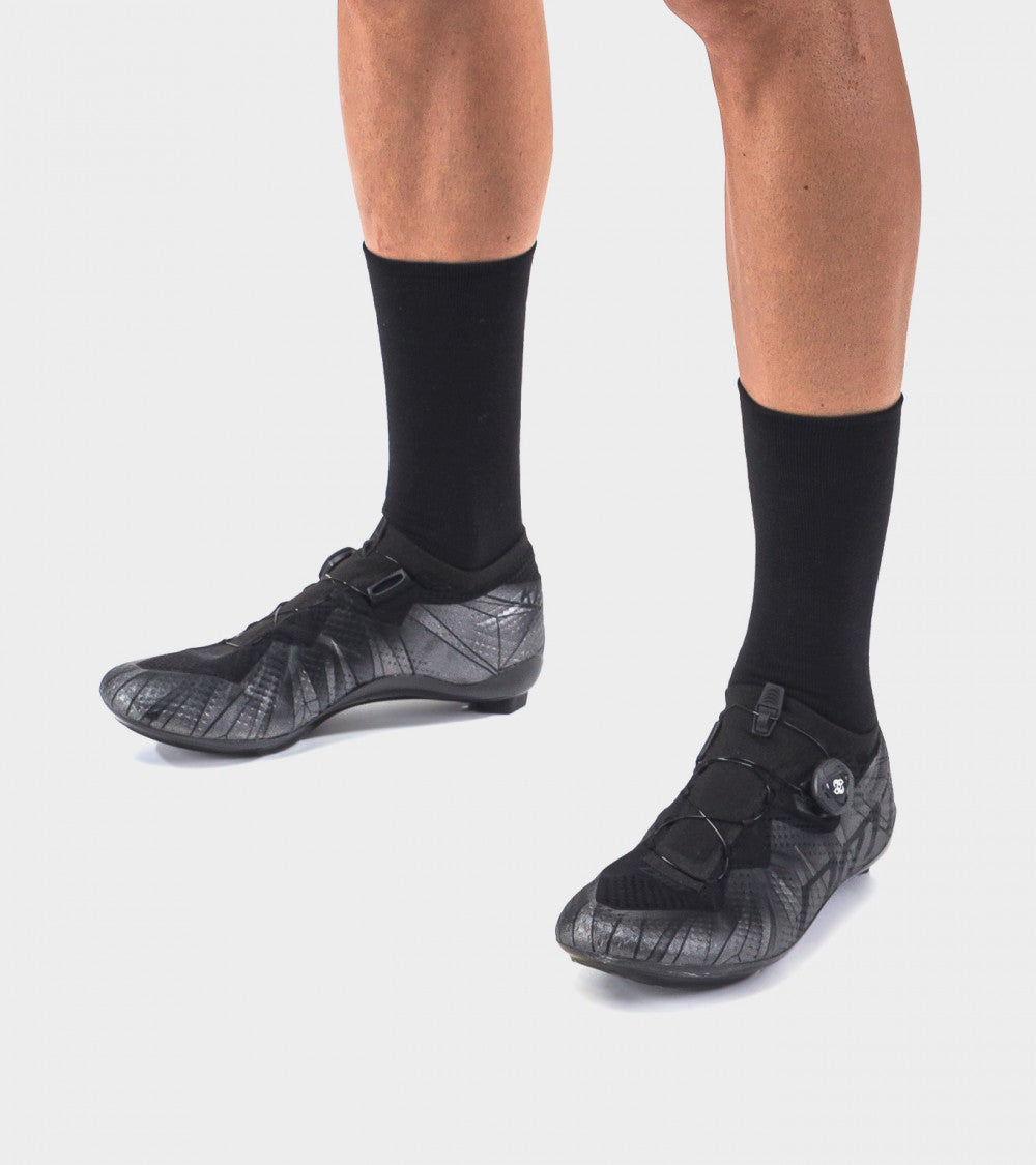 Calza in polipropilene ad elevato grado di isolamento. Rispetto alla lana detiene una capacità termo-isolante superiore in quanto presenta una barriera traspirante che funziona da isolante in ingresso e da veicolo del sudore verso l'esterno. Essendo anti odore e idrofoba previene la formazione di cattivi odori e mantiene la pelle sempre asciutta.