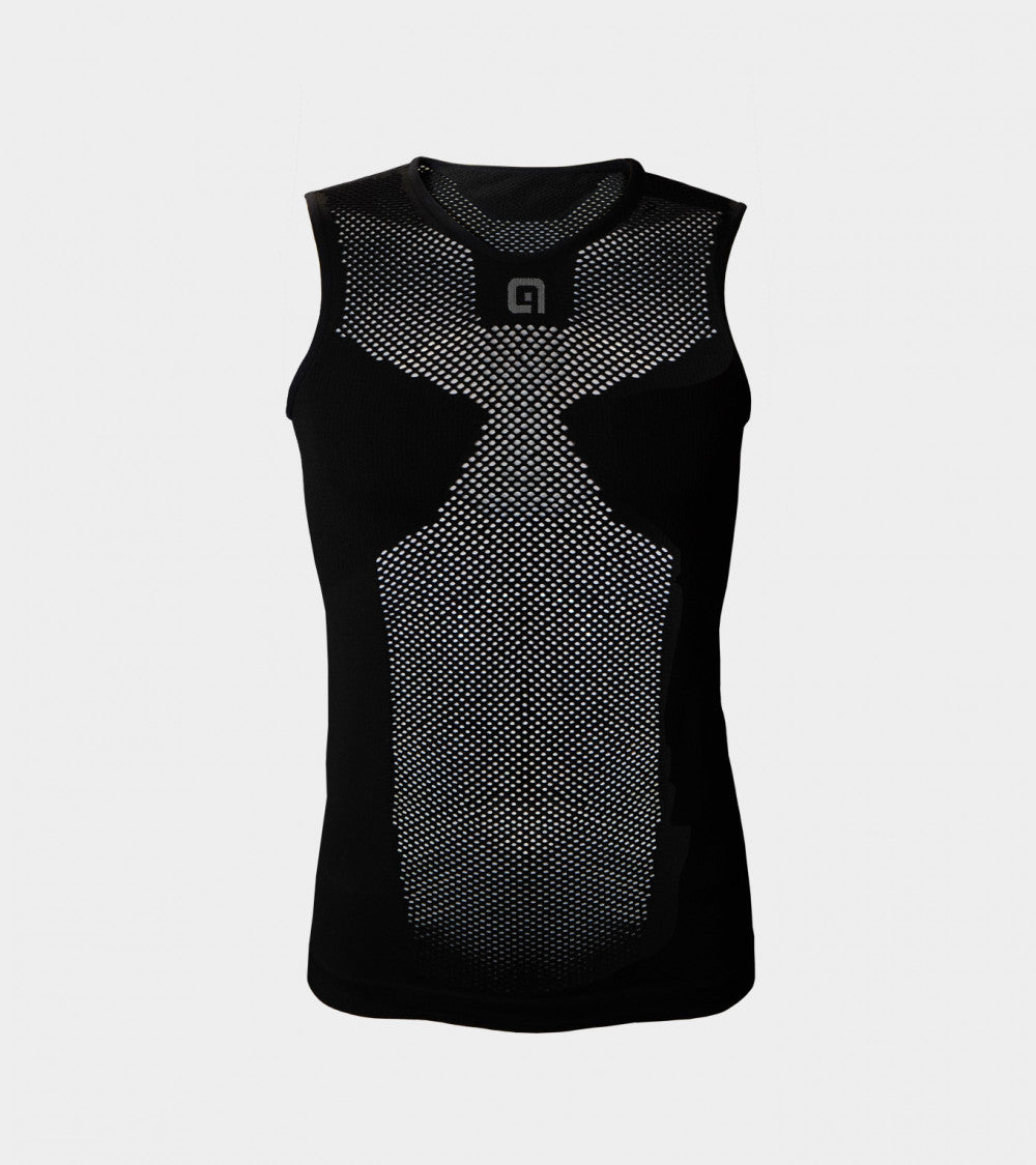 Lo smanicato intimo seamless in tessuto polipropilene Dryarn per le stagioni piu` calde. Struttura a fori larghi.