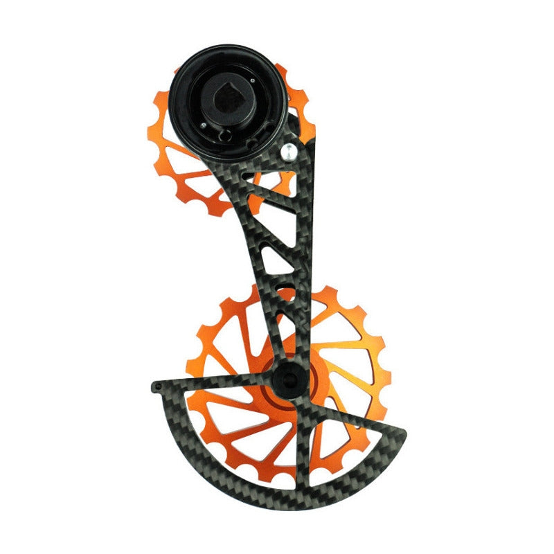 Questo prodotto è composto da una gabbia in carbonio e 2 rulli in alluminio 7075 (14 e 17 denti) con cuscinetti sigillati completamente in ceramica.