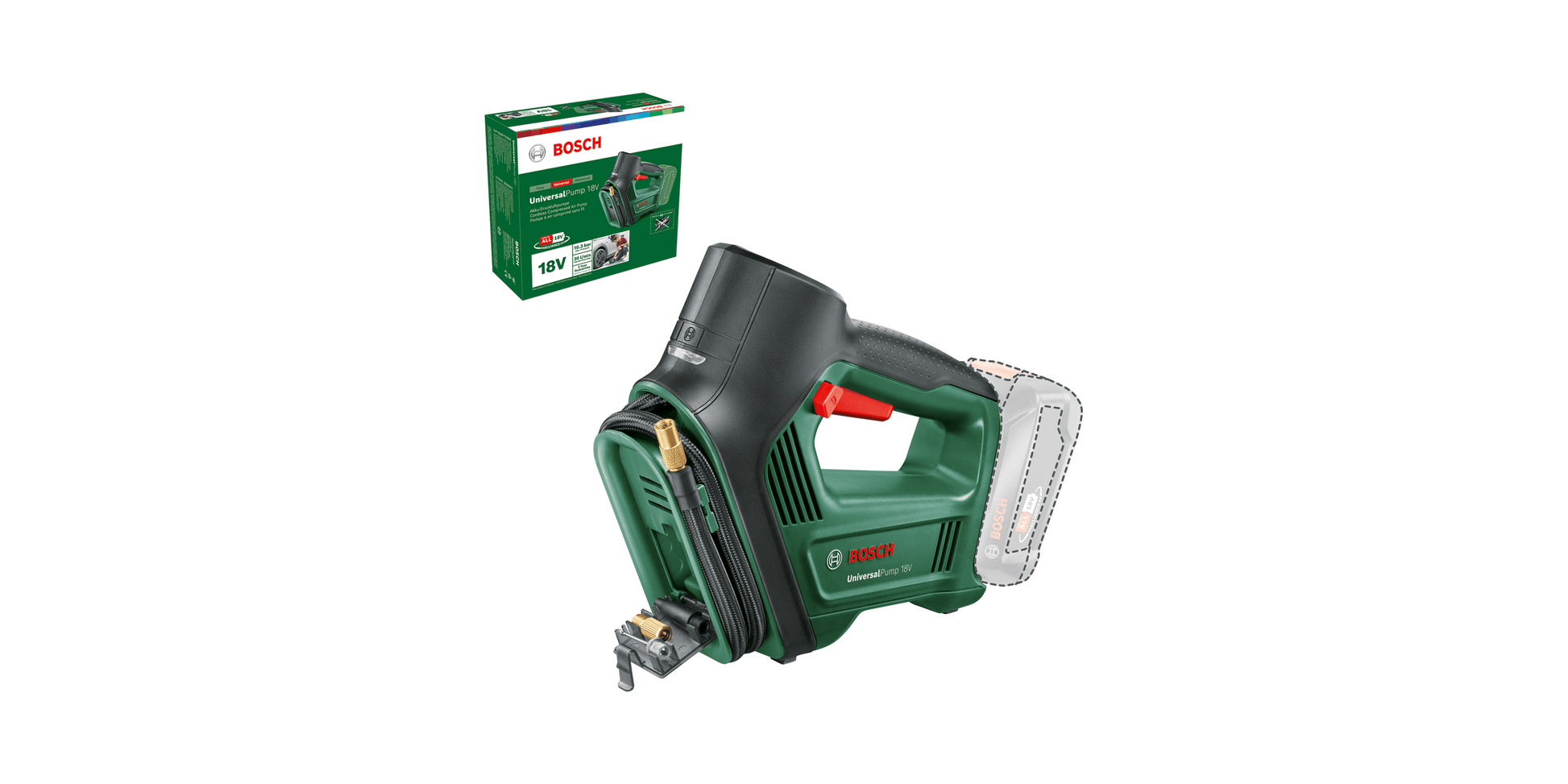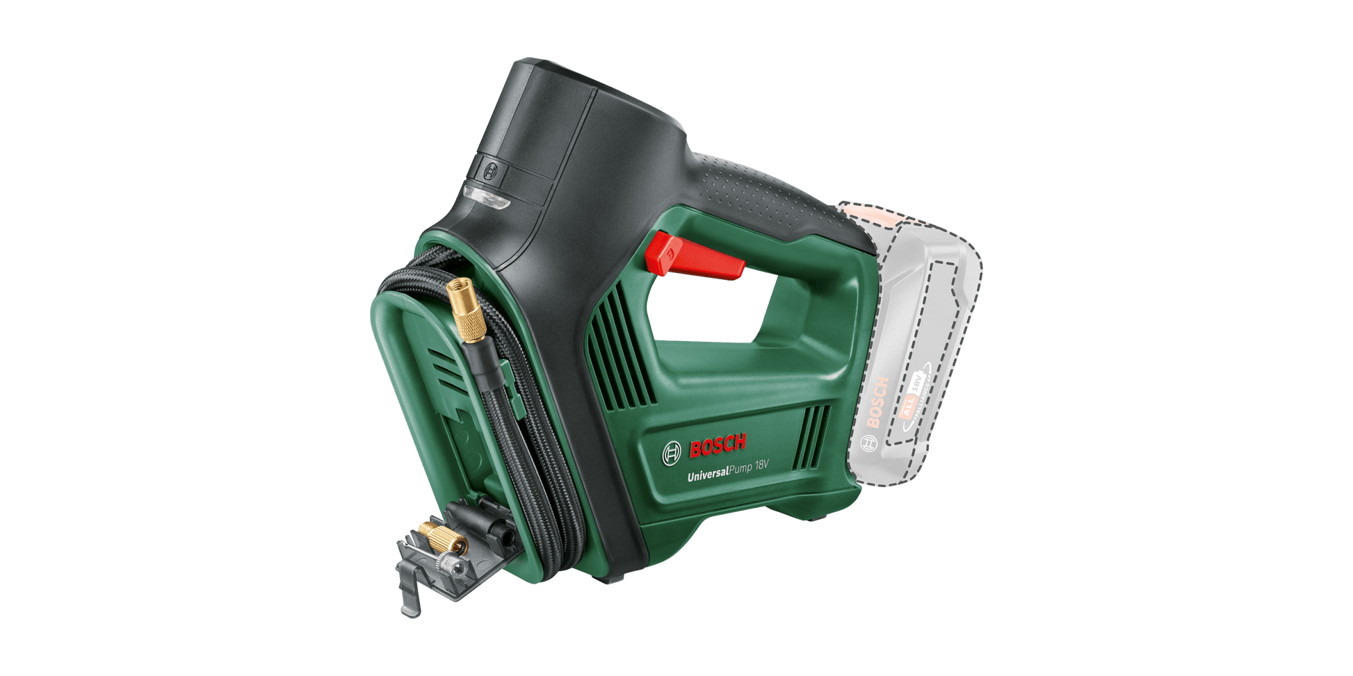 Un gioco da ragazzi: UniversalPump 18V è ciò che ti occorre per gonfiaggi rapidi – con portata fino a 30 litri al minuto – per un impiego pratico ed intuitivo. Essendo alimentata a batteria, potrai utilizzarla ovunque, ad esempio per gonfiare pneumatici dell’auto o della bici ed altri oggetti gonfiabili; inoltre, si attiva in modo semplice e veloce, agendo sulla levetta di regolazione del numero di giri. Un apposito manometro illuminato indica con chiarezza i valori di pressione, risultando molto pratico in condizioni di scarsa luminosità. Terminato il lavoro, potrai sistemare tutti gli accessori e il tubo flessibile direttamente sulla parte anteriore dell’apparecchio. L’utensile fa parte della POWER FOR ALL ALLIANCE. Con la stessa batteria è possibile alimentare un’ampia gamma di utensili di vari marchi.