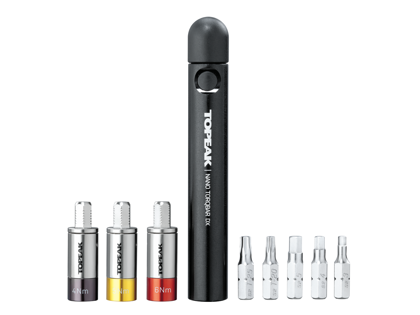 Il set Nano TorqBar DX include TorqBit da 4/5/6 Nm ed è la chiave dinamometrica preimpostata più sottile e compatta disponibile. È uno strumento di alta qualità realizzato con precisione per il meccanico di casa, il negozio di biciclette professionale o per la tasca della tua maglia. Il suo design avanzato di rilascio del limite di coppia applica costantemente valori di coppia precisi sui bulloni dei componenti per la sicurezza e previene danni alle costose parti in carbonio. Include anche le 5 punte per utensili più popolari, esagonali da 3/4/5 mm e Torx® T20/T25. Due dei tuoi inserti preferiti possono essere trasportati nell'impugnatura della Nano TorqBar per un utilizzo immediato e una portabilità ancora maggiore durante le corse.