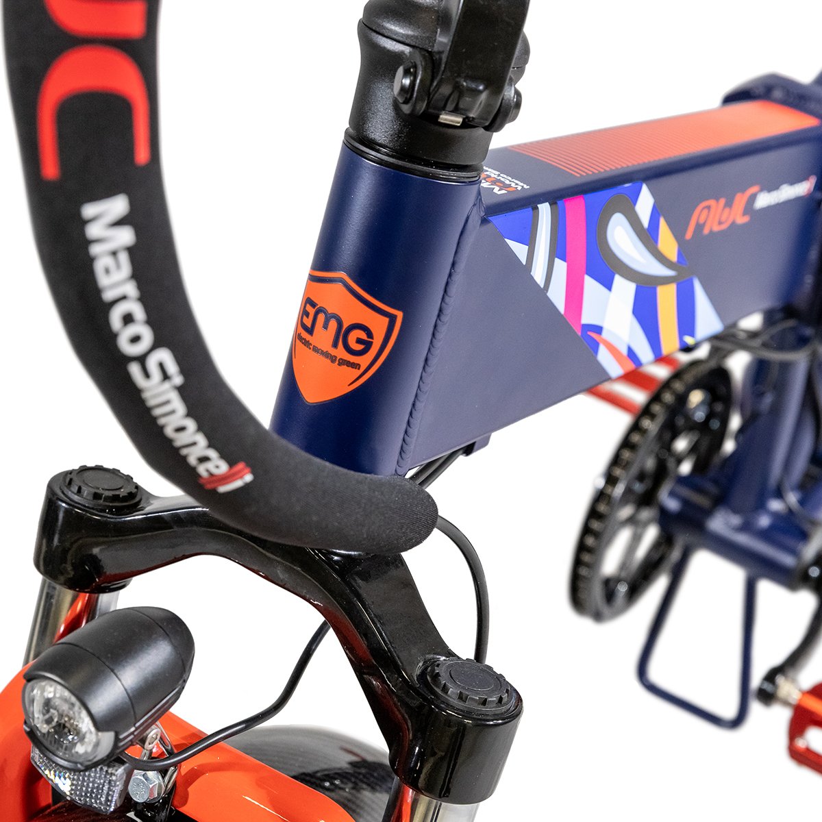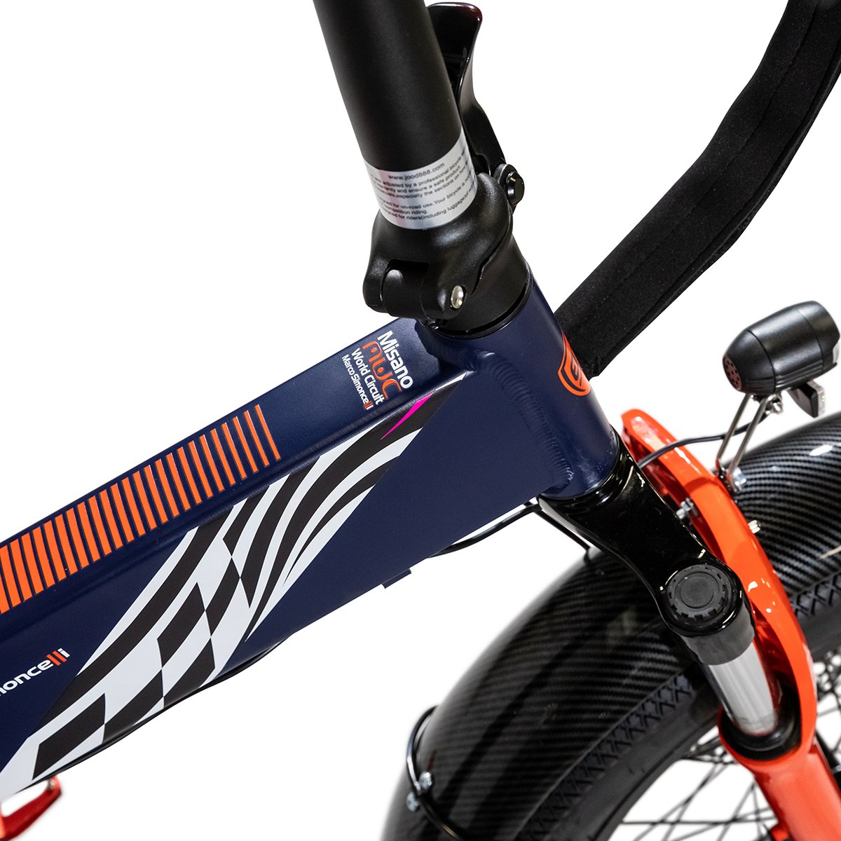 Le fat bike Bomber MWC est un vélo électrique aux lignes sportives et de caractère, décoré par texture officielle du Misano World Circuit , inserts rouges de course Et garde-boue aspect carbone , des détails qui rappellent le monde de la course dont s'inspire le produit.